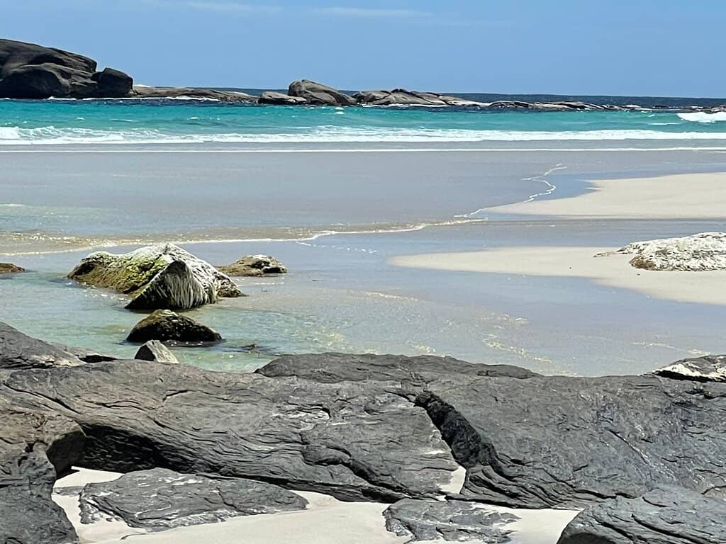 Stunning Western Australian beach with clear waters, a beginner-friendly surf break, and a nearby shipwreck.