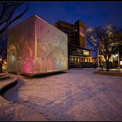 In addition to The Cube, Old Market Square also has a number of other amenities, including a playground, a fountain, and a variety of benches and tables. There is also a large mural on one of the walls of the square that depicts the history of the Exchange District.