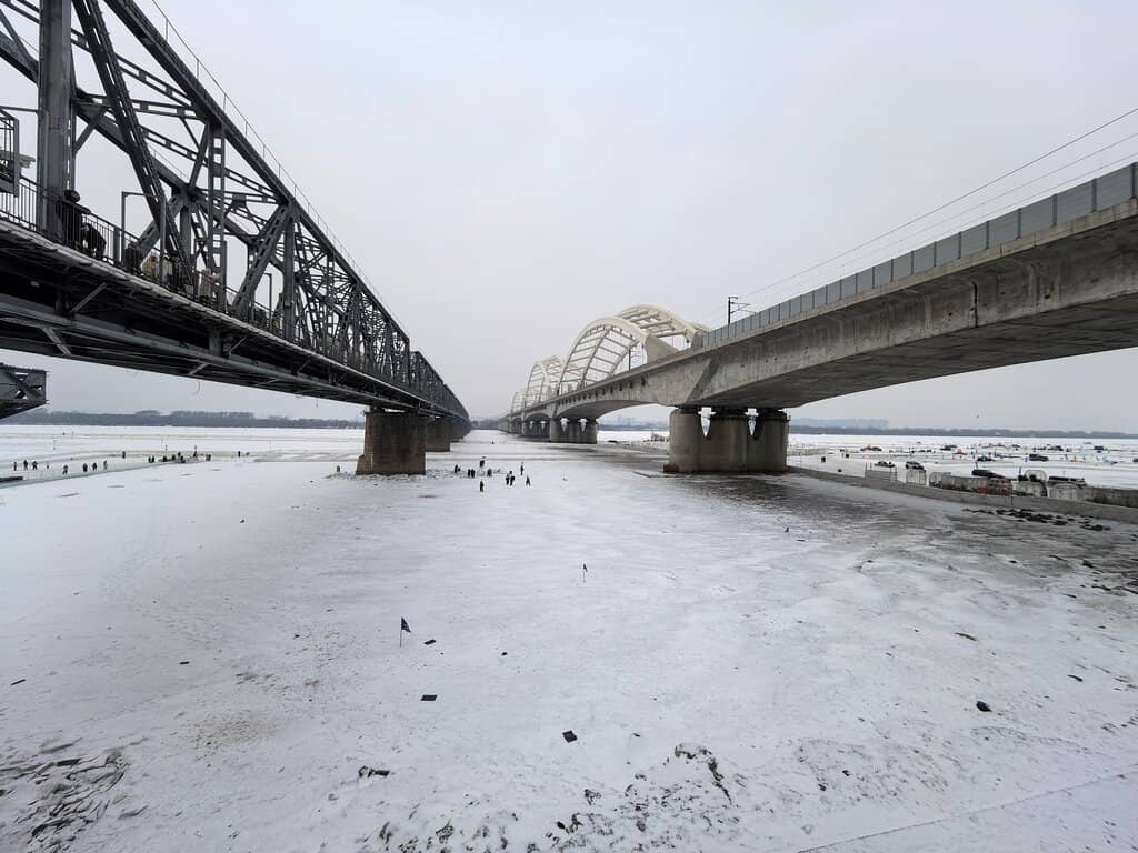 Find photogenic ice blocks for free under the Songhuajiang bridge.