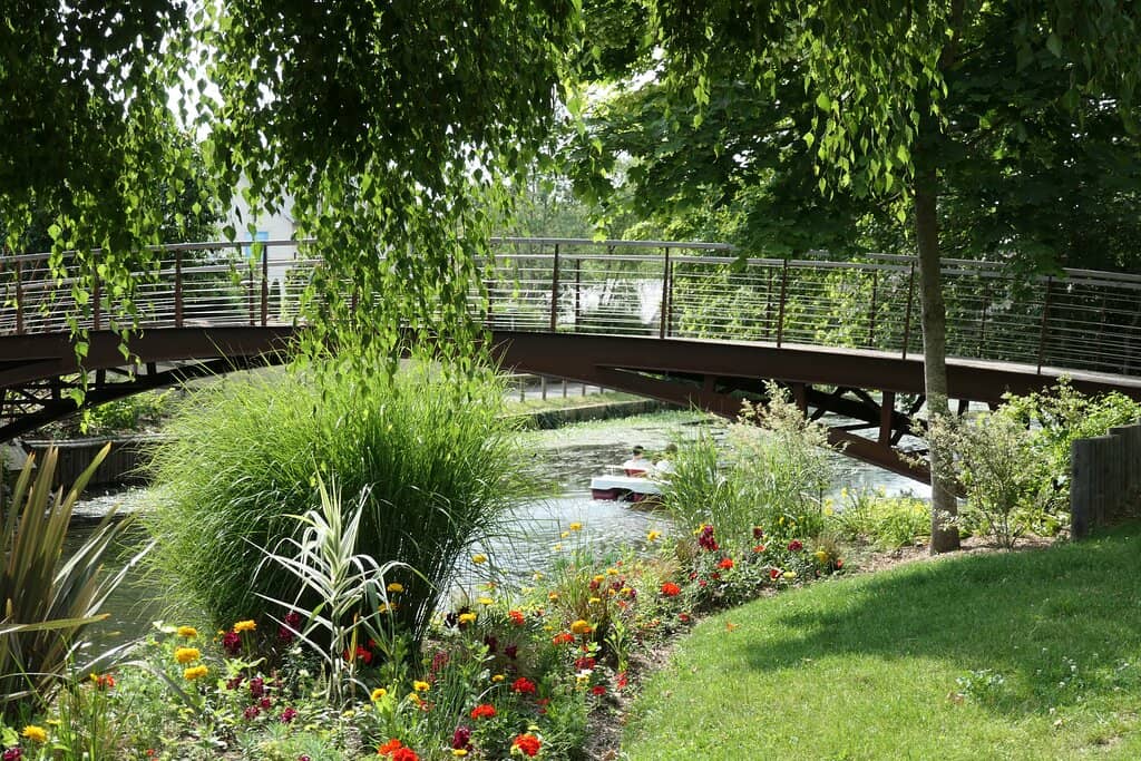 A serene riverside park in Chartres, offering peaceful walks, beautiful scenery, and a charming seasonal cafe.