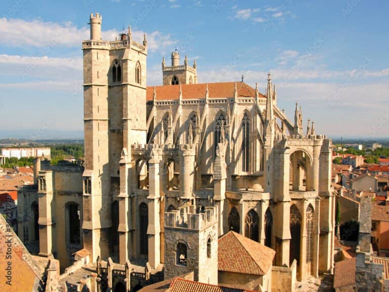 A monumental, unfinished Gothic cathedral in Narbonne, boasting a soaring choir, exquisite art, and panoramic city views from its tower.
