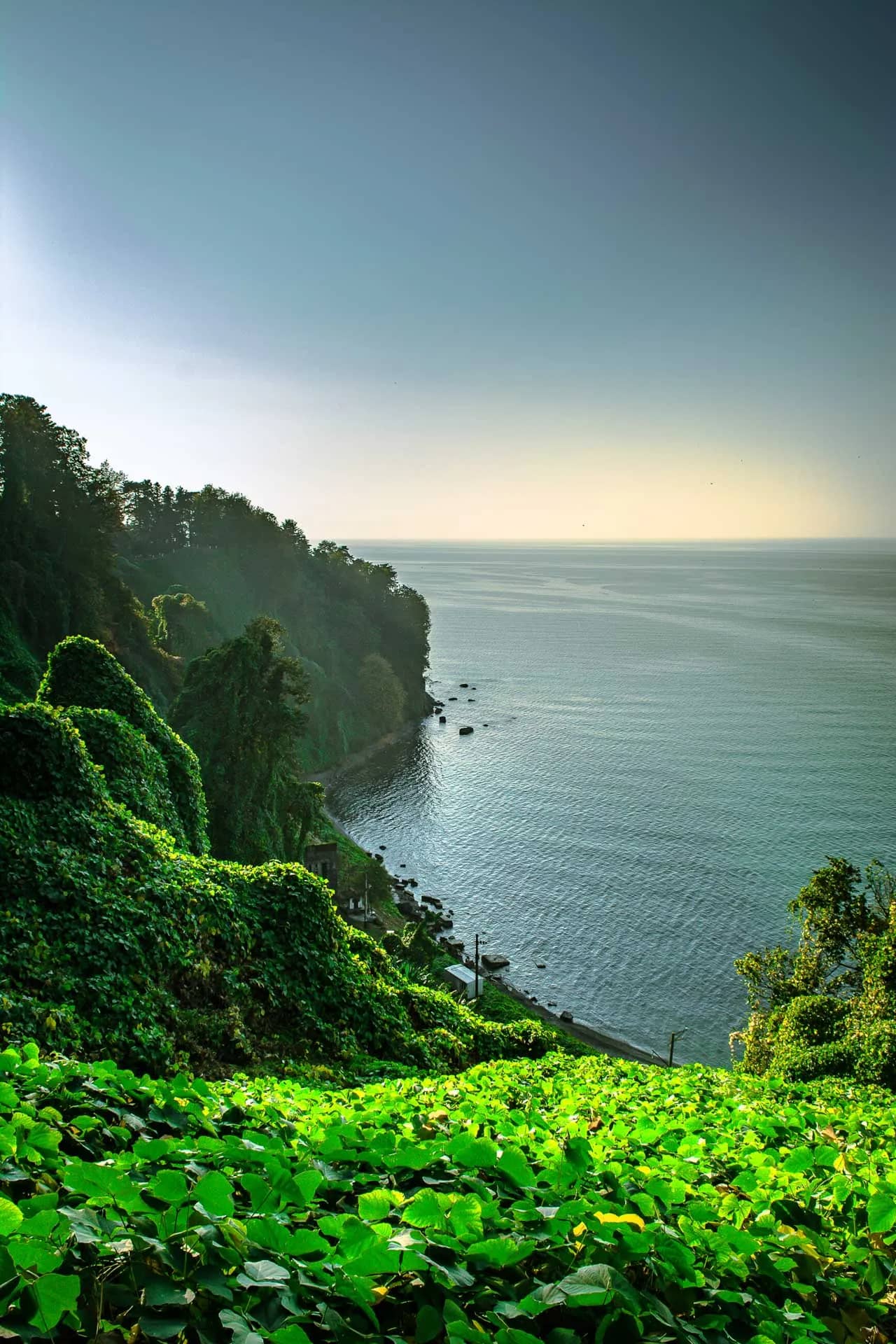 A stunning natural escape near Batumi, Georgia, featuring rocky shores, lush greenery, and thrilling cliff jumping opportunities.