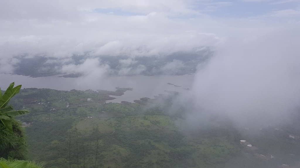 From the summit, you get stunning panoramic views of Pawna Lake, Mulshi Dam, Tikona Fort, and the surrounding Sahyadri mountain ranges.