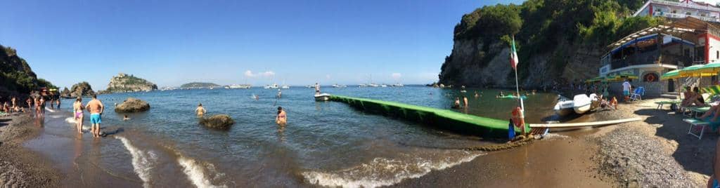 "Stunning views of the Aragonese Castle make this beach a unique, though challenging, destination."