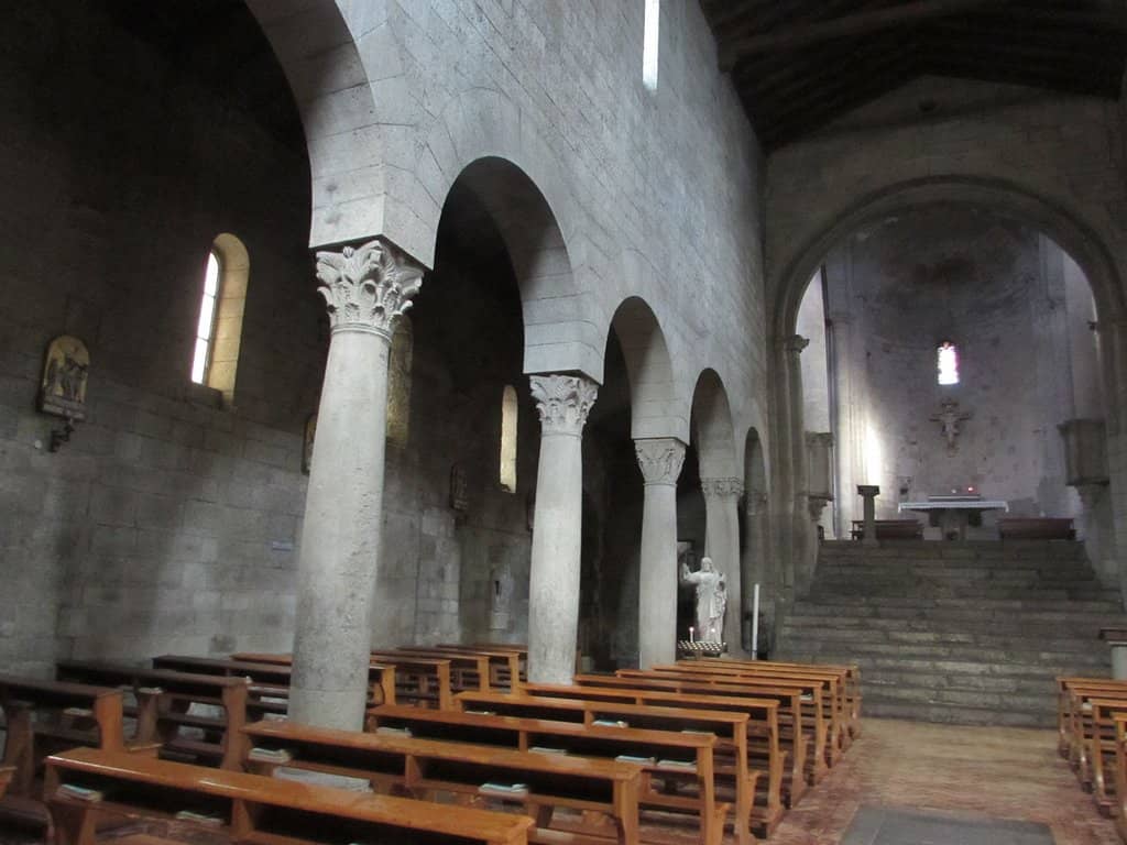 San Sisto Church is a significant example of Romanesque architecture, noted for its rare unity of design. It was heavily damaged during WWII and subsequently rebuilt, retaining its medieval character.