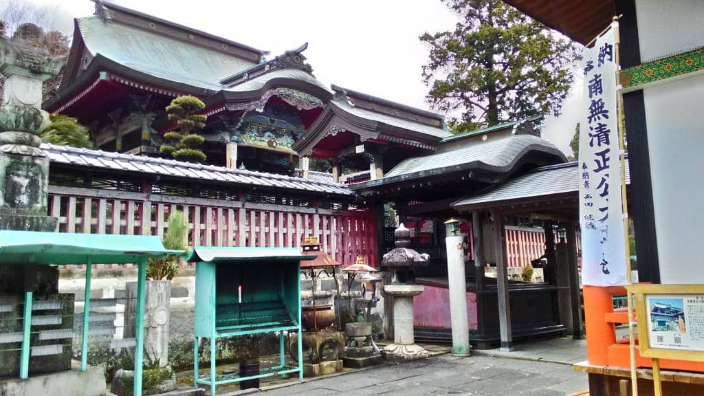 The main attractions include the 176 stone steps leading to the mausoleum of Kato Kiyomasa, the statue of Kato Kiyomasa, and the peaceful temple grounds.