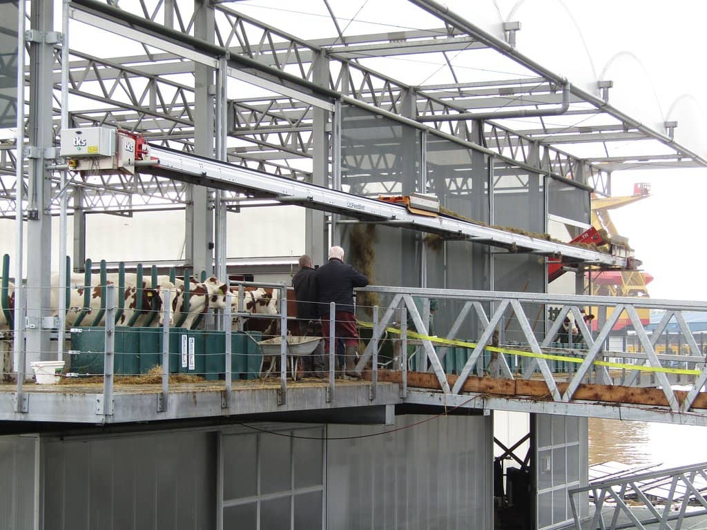 A pioneering urban farm on water, showcasing sustainable dairy and vertical farming in Rotterdam's harbor.