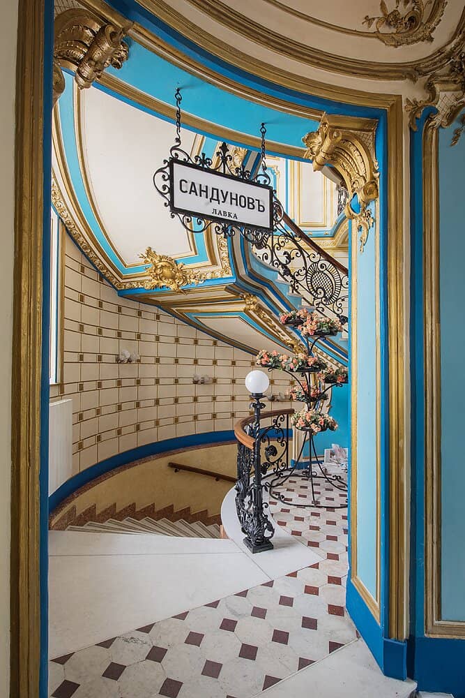 Sanduny Baths are centrally located in Moscow at the corner of Neglinnaya Street and Sandunovsky Lane.