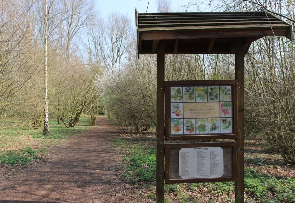 "Such a nice quiet woods with carvings trails and walk up to local church which i think is quite old. The woods got funded by local organisations and company's. Many of the trees and plants are dedicated to people that have passed. Nice touch. There is a gym trail with wooden equipment."