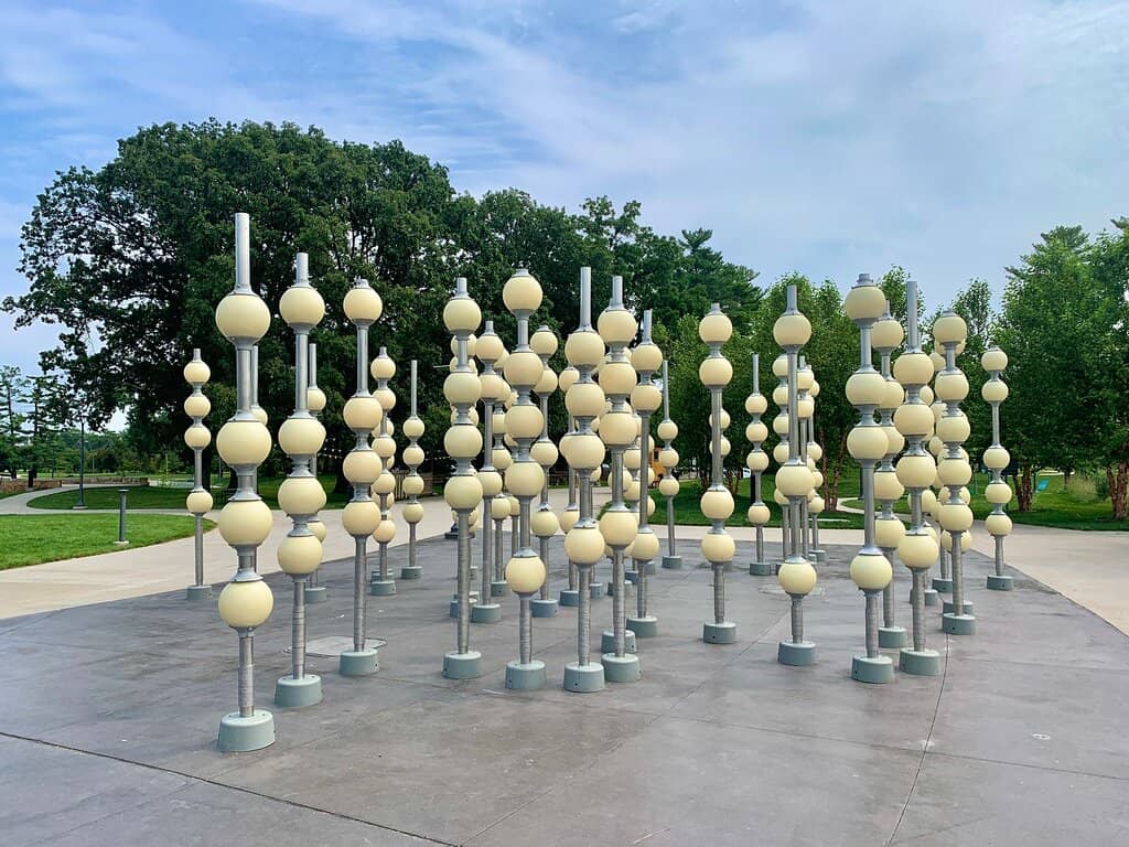 The areas near Gray Lake offer scenic views, especially with the event stages and sculptures. The fishing ponds can also provide a more natural, serene backdrop.