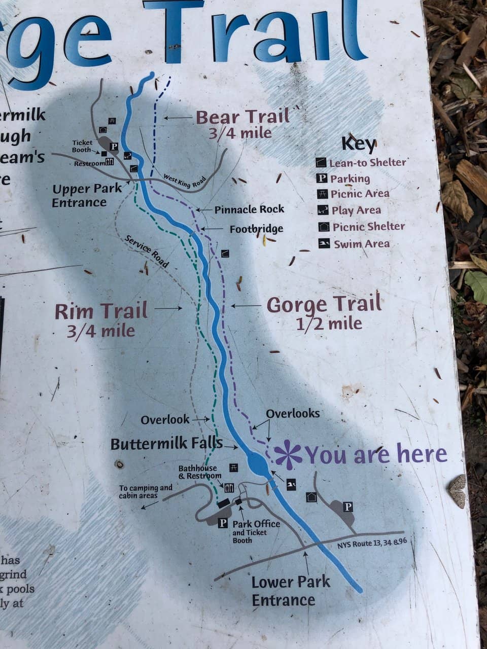 From Ithaca, head south on NY-13 S/NY-34 S/NY-96 S. Turn right onto Buttermilk Falls Road, and the park entrance will be on your left. Always use a GPS for real-time directions.