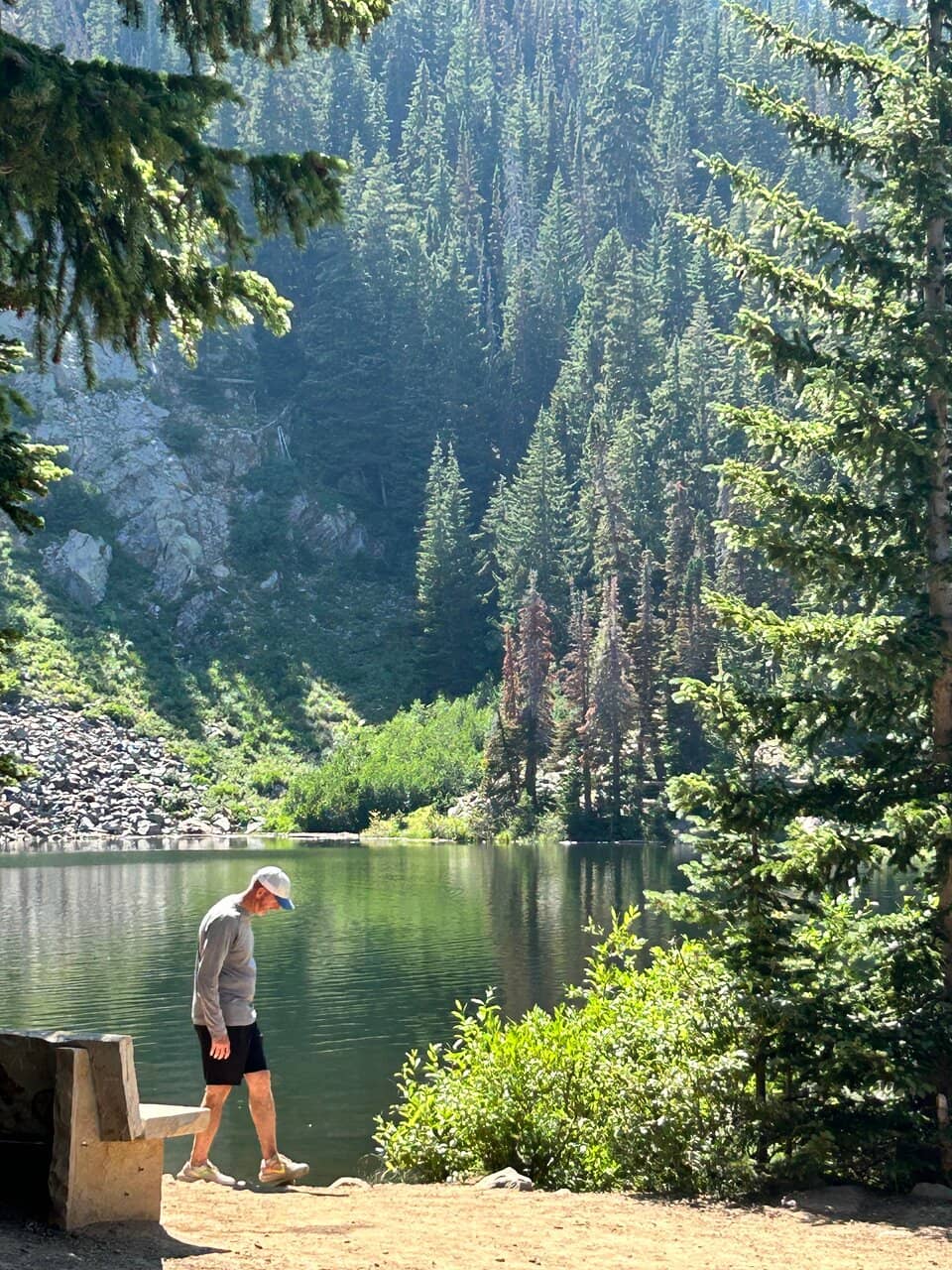 The lake itself offers stunning reflections and mountain backdrops. Look for wildflower patches in meadows and scenic overlooks along the trail. The rope swing area is also popular for photos.