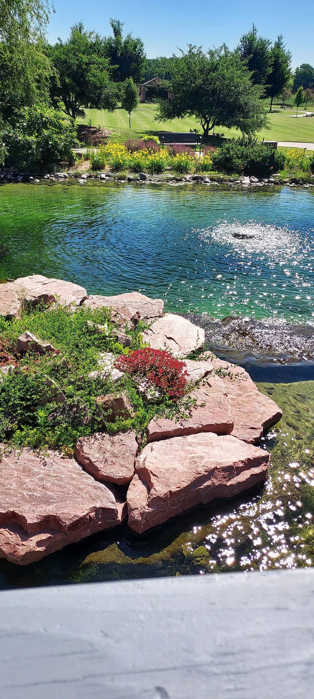 Also, their pond and waterfall are nice touches but are colored blue and treated with herbicides so that they look like something sterile and synthetic like you’d see at Disney World. Such a wasted opportunity for a naturally beautiful pond that could be beneficial to all sorts of wildlife..."