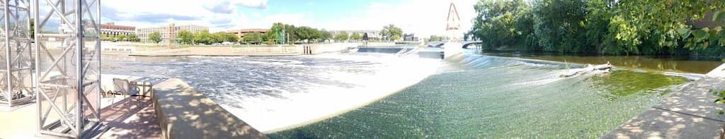 The entire plaza offers great photo opportunities. Focus on capturing the interactive light structures and their reflections in the St. Joseph River.