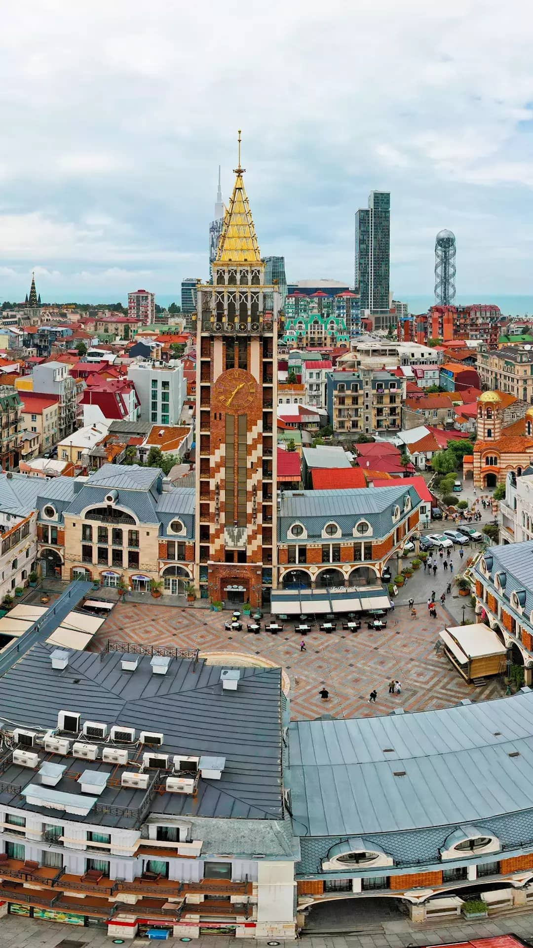 A charming European-style square in Batumi, famous for its architecture, lively evenings, and central location.