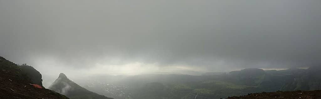 Expect stunning panoramic views of the Sahyadri mountain range, deep valleys, and lush green landscapes. During monsoon, multiple waterfalls add to the scenic beauty.