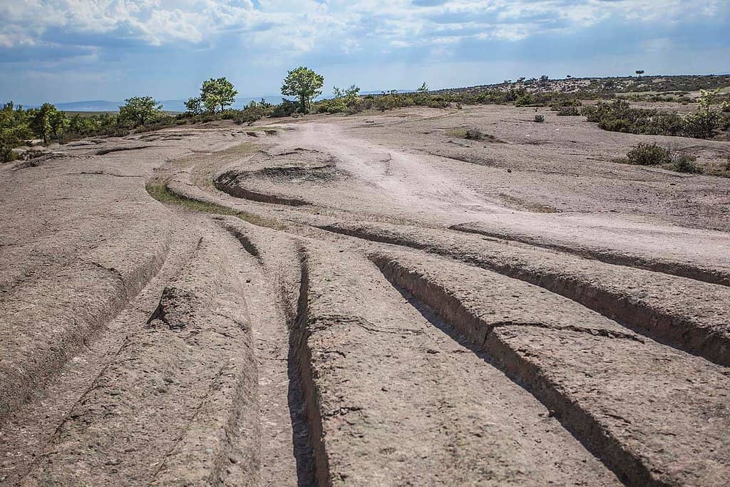 Marvel at the complex web of crisscrossing and branching ruts, resembling ancient roadways.