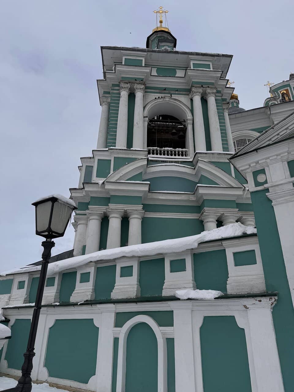 Epiphany Cathedral showcases a unique blend of Byzantine, Baroque, and Classical architectural styles, creating a visually rich and historic facade.