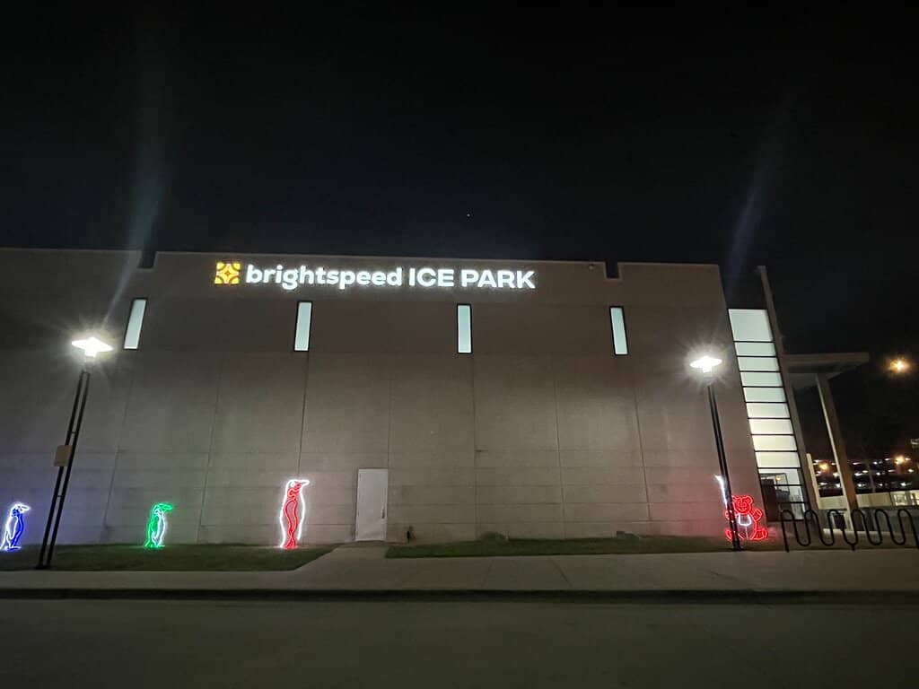 Besides ice skating and figure skating lessons, the park hosts hockey games, broomball events, pickleball tournaments, and sometimes features mini arcades.